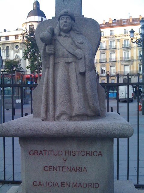 I walked the length of Calle Mayor twice today trying to gain entrance to the Church of Santiago for my first credential stamp, but to no avail. By 7:30pm the closest I had come to anything Camino was this nice little statue of a pilgrim near the Plaza de Sol (and a very old painting of St. James & his stone boat in the Prado).