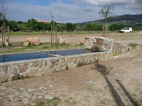 Pilgrim Notes: Saw another pilgrim fountain today, about 4km past Manazanares but to my mind it looks more like a bathing trough… Is also a nice picnic area just past, at Ermita de San Isidro. Had a lovely mountain backdrop, proper drinking fountain.