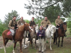Funnily, it got colder the morning went on. Still cloudy grey skies but no rain yet. I stopped just out of Nava at a confusing junction where the arrows were pointing in 2 different directions, and decided to put on my gloves and fleece while pondering my dilemma, when I looked behind me and saw another pilgrim walking up so I waited to see what he would do. Quite confidently he pointed to the Right, so that’s the way we both went. His name was Carlos, a Madridelino, and he had stopped working in January and his retirement gift to himself was to walk the Camino de Santiago. We walked the rest of the way to Coca together. His English was much better than my Spanish, and it was nice to walk & talk with someone for a change. Saying that, I never bothered to take any more photographs, except of my 5 caballeros when they rode past.
