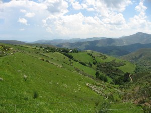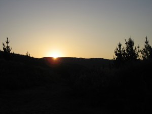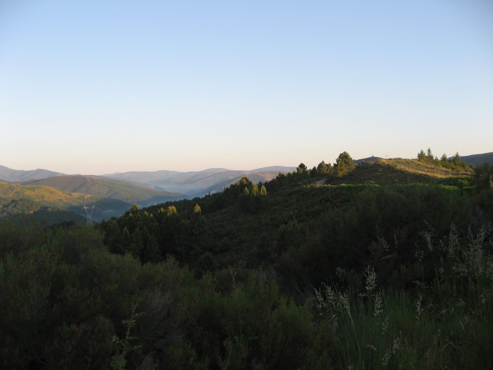 The advantage was that I was once again out in the wilderness…kinda. I passed some abandoned small stonewall-enclosed fields that must have grown something at sometime, and the trail was actually a poor excuse for a road that eventually led up to a series of power lines and radio tower. But I was up in the forest again and it is wonderful. The views are just incredible: the sun is just breaking on the mountains across the valley from me but I’m still walking in pre-dawn light in the heather, broom and all my favorite plants. I can easily see the attraction of being a hermit in a place like this: nothing but nature, solitude, and beauty. If only the job came with wi-fi, hot showers & central heating