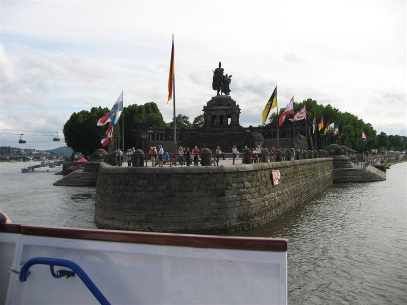 | Koblenz is where the Moselle River(R) meets the Rhine(L), and there’s a great big statue of Kaiser Wilhelm to commemorate this (?!?) |