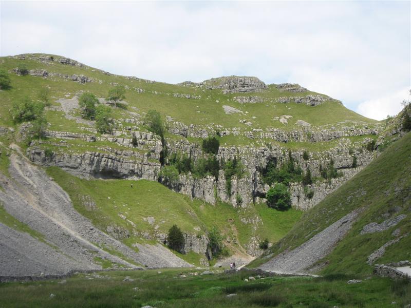 limestone into crags, gorges, scar, steps and tarn. (cliffs, rocks,