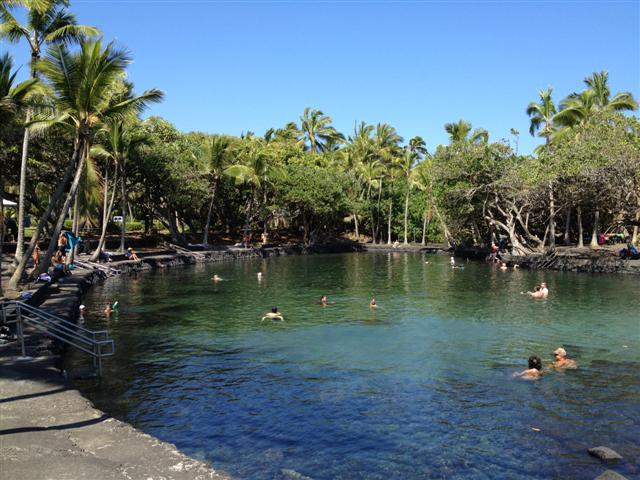 At Ahalanui Beach Park we were mightily tempted to take a dip in the spring-fed thermal pool but we had many miles to cover that day