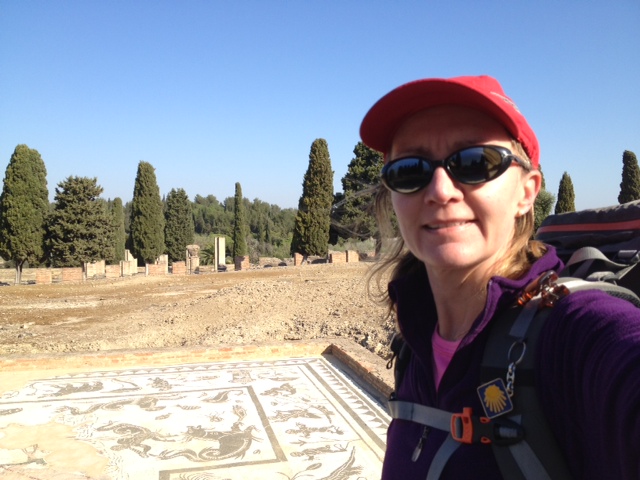 After 10kms I reached Italica (picture above), the site of extensive but well-worn roman ruins dating to 200 BC. There were some pretty mosaics, a large amphitheater and tons of rambunctious school kids. A nice little interlude from walking. Then it was another 10 kms of arrow-straight dirt road to Guillena.
