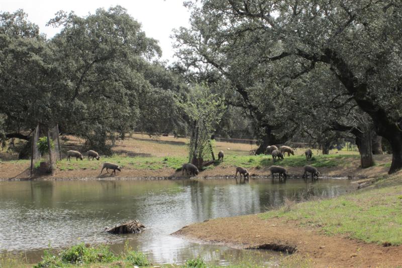 while I watched a big pack of black Iberian pigs snuffling around a