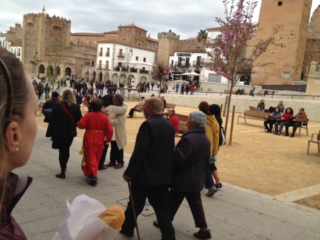 The early birds were chomping at the bit this morning, having gotten up just after 6am but forced to cool their heels until the monastery’s front doors were unlocked at 7:30am. A big rush when the appointed time came, then a quietness descended as the rest of us slowly prepared to leave. Iris, Philomena and I met half of them having breakfast across the way before they rushed out again to start their day’s walk. We sipped our coffees and munched our toast until it was time to leave for the 9:10am bus to Caceres.