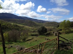 The scenery was quite beautiful and I was able to enjoy most of it until the afternoon when my tired feet and sore muscles turned all my thoughts inward. In the beginning, however, I realized that I must be climbing in altitude as it seemed as though Spring has not quite sprung in this part of Spain. The trees are quite barren and the broom was not yet in flower. I walked on a nice backcountry road which overlooked a narrow valley with the sound of a small river running below, until I gained the valley floor and walked parallel to the river on one side and a rocky hill populated with grazing cows on the other. Up a rocky roman road into Calzada de Bejar (16kms) where the need for caffeine prompted me to ask an old man for directions to the one neighborhood bar. I ended up with a smeary stamp in my pilgrim’s passport and a very “Buen Camino”! The noon bells rang me out of town and I carried on to the next refreshment stop 8.6kms later in Valverde de Valdelacasa.