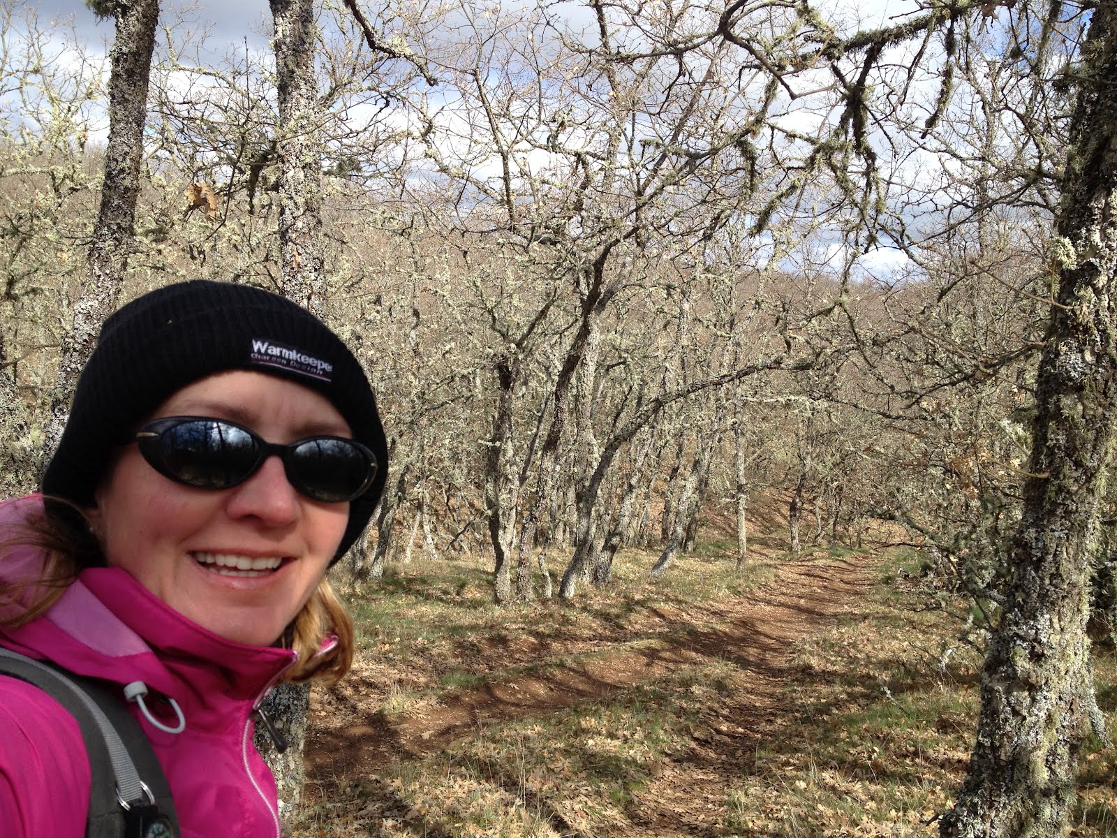 there versus 10 in the dorm room. There were torrential rains during the night so I was a bit worried about the mud situation today. The day dawned cloudy and very cold. Luckily (for Friday the 13th!) I found another fleece in the donation box so all but my face was warm enough. The cold wind started my waterworks again, so much so that my sight was blurred for the first hour. I had to hope that the pilgrim I was following knew where she was going! I didn’t have enough tissues handy to stem the tide so I just let them free fall; can you dehydrate from too much crying? I would have taken a sip of water but I’m sure my water bladder was probably frozen…. After 75 minutes of wide open fields, the landscape changed to scrub and trees and the winding sandy/muddy road into a rocky trail that climbed sharply up Picos Duenas towards a cluster of wind turbines. The strong wind had blown most of the clouds away so I found a protected spot amongst some rocks and sat in the sun for a nice midway snack with a great view of everything below. What goes up, must go down, and as I’ve said before, on the Camino it always goes down steeply. Down thru more leafless trees still held in winter-mode. Or perhaps they’re dead? Could they be strangled by the lichen? The path fell down to a small paved road which the Camino paralleled on a nice dirt path. A windy way thru more dead forest and out into beautiful pasture and hedgerowed farms. I was feeling sorry for myself this morning but my mood blew away with the clouds and I quite enjoyed the latter half of the walk. And I’m ecstatic that I’ve found the ‘2nd’ albergue, El Miliario, which no other pilgrim has yet. They all stopped at the first industrial-looking one. I might have this cozy little bungalow all to myself tonight!! |