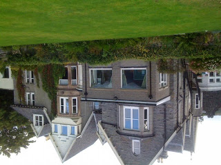 | No time to rotate as our bus is leaving but this upside down house is our home for the week |