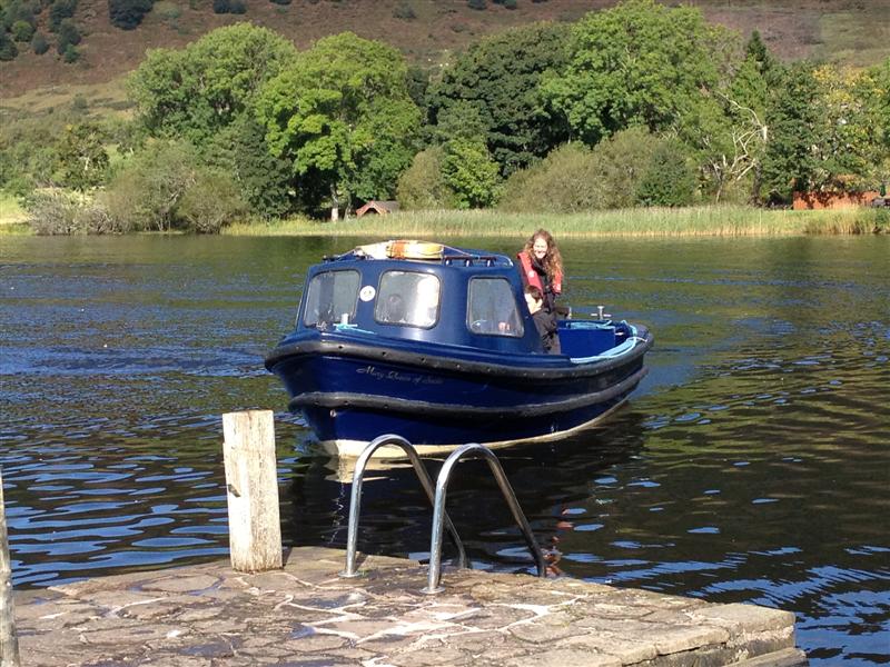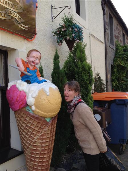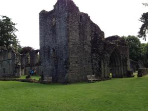 Anyway, we had only a lite day of sightseeing planned – just Inchmahome Priory and Stirling Castle, before ending in Callander, the ‘gateway to the Trossachs National Park’ . The first is a ruin of an old monastery on a tiny island in the Lake of Menteith. Active as a religious center for about 300 years from the mid-1200’s, it’s popularly known now as one place of refuge used by Mary Queen of Scots when she was just a young girl. Being on an island, and a rather small tourist sight, there’s the charming method of calling the ferry by turning over a sign on the dock so the white face is showing, and a few minutes later a little boat comes alongside to pick up any passengers. It could be a wonderful place for a picnic, as some hardier tourists were doing, but not for these two wimpy Canadians who were already shivering in the cold wind…