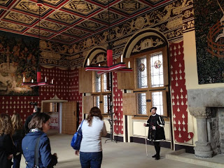 Off to Stirling Castle, one of the great tourist sites in Scotland. Occupied for at least a 1000 years, the present castle dates mostly back to the 1500-1600’s and thanks to a very recent restoration, the Royal Palace looks like just King James V could come strolling through at any moment! It may be a bit too tarted up for some people, but I enjoyed seeing at least one place as it would have looked originally, not always threadbare and colourless as most castles are…