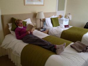Well, our fancy hotel on Loch Lomond turned out to be a godsend as the rain was just torrential, all day Thursday. We took advantage of not having to be anywhere at anytime to sleep in as late as we’d liked, then we waddled down to the enormous breakfast buffet at 10:30am to feast on eggs and haggis and black pudding (ha ha! not really, just a mouthful of each); then sit by the window with our cups of tea watching the world melt away. We puttered around the hotel at our leisure, going for a nice swim & sauna, watching TV and reading our books until I could stand it no longer and dragged mum out for a late-afternoon walk around the resort in the rain. We suffered only wet toes from our not-so-waterproof boots but were refreshed by the woodsy fresh air, enough to make dinner reservations at the sister golf club down the road. We ventured out for dinner! Quite a feat for us who are more prone to kick off our shoes and pour our evening drinks at 5pm and call it a day…