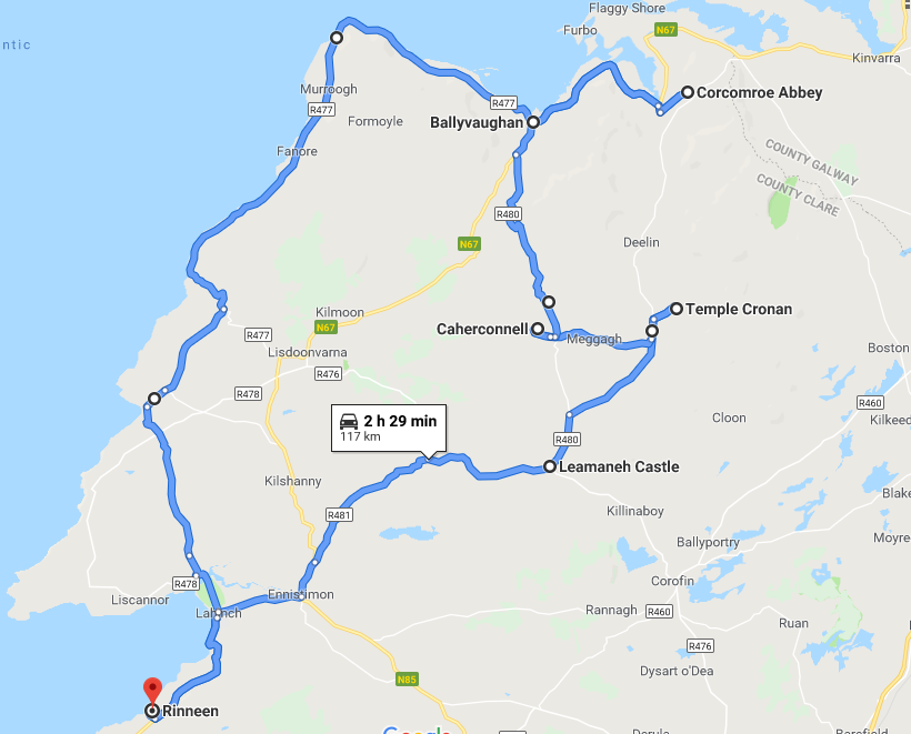After this quick stop I carried on north through the Burren uplands, looking out for the scenically situated but now ruined stone church of Carran