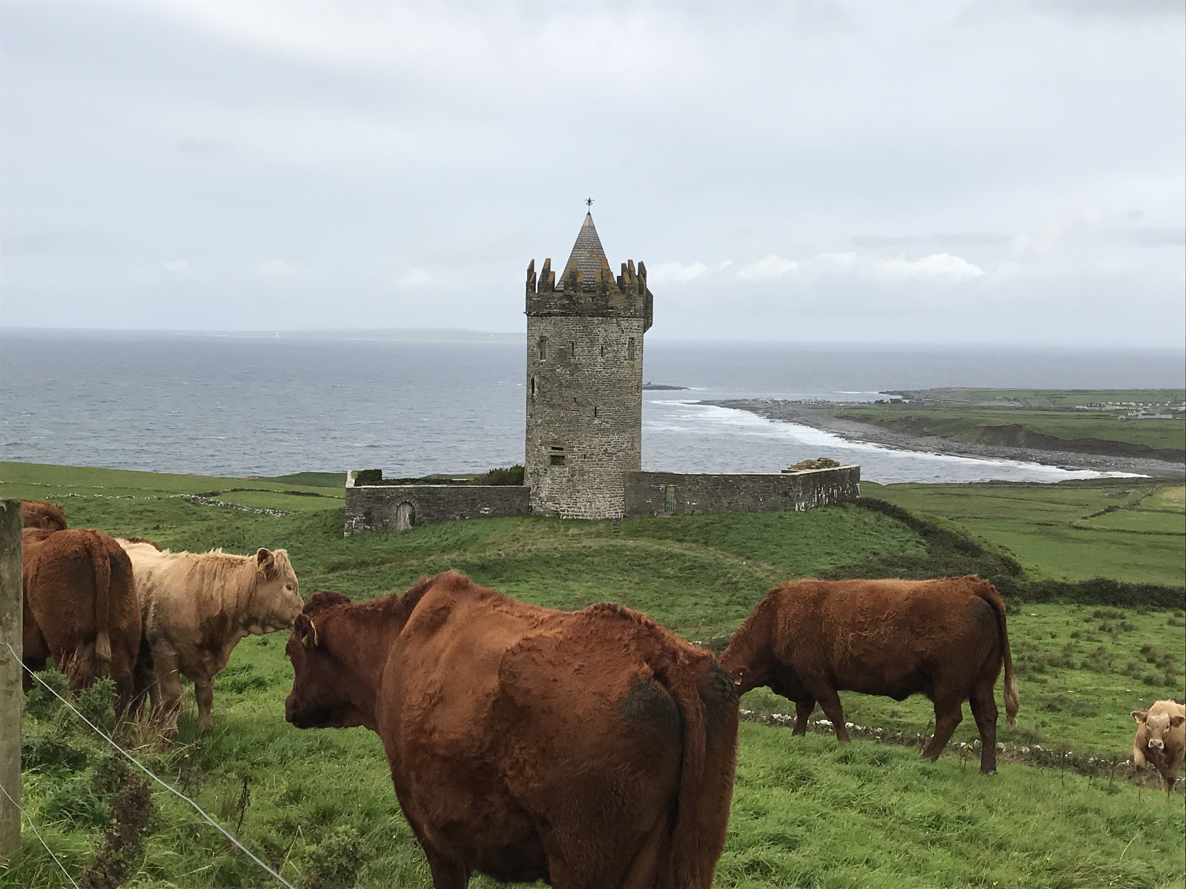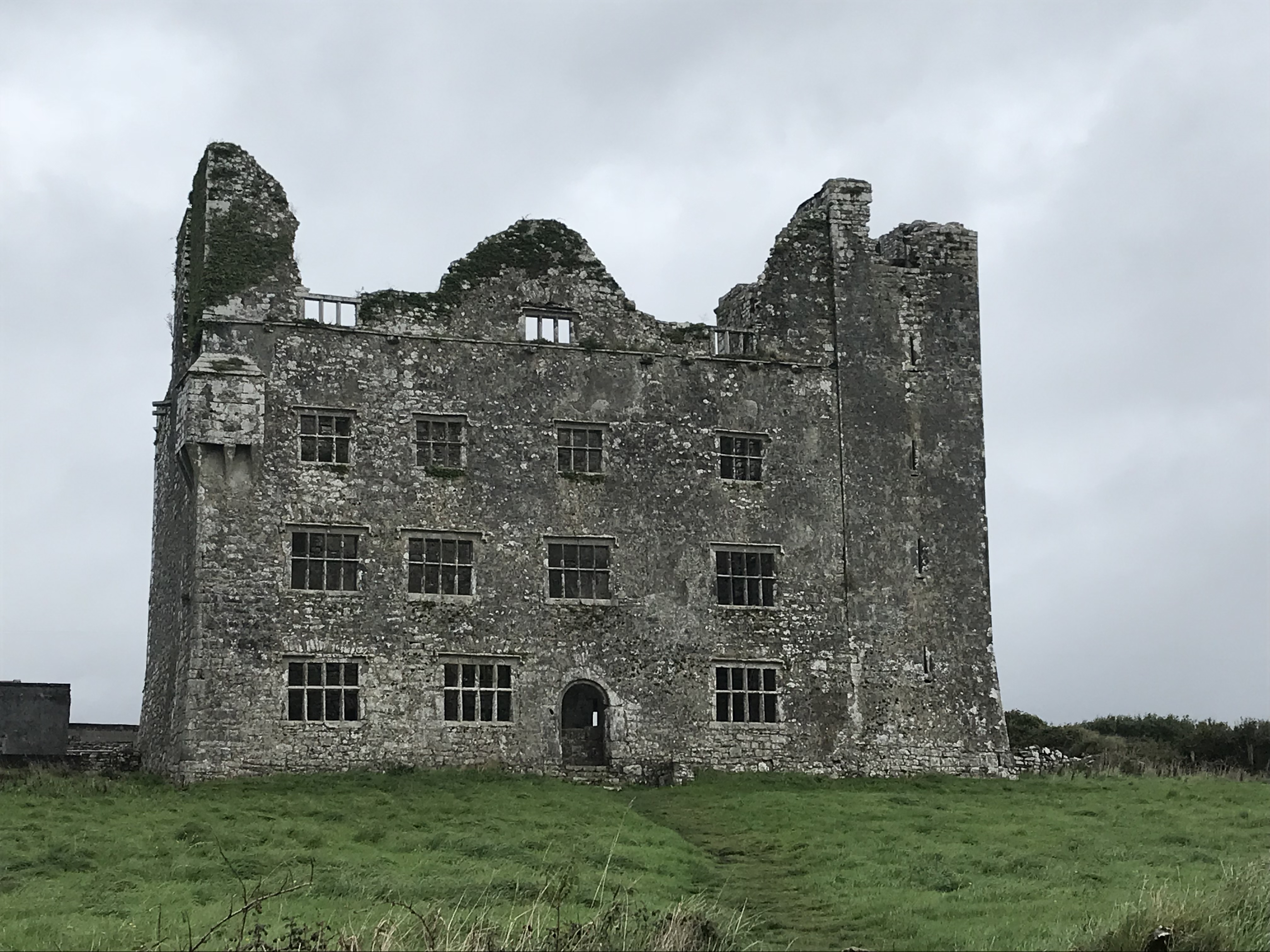 Drove the Burren today. It’s a rocky geological area full of Neolithic sites and old stone forts. I got a map from the Visitor’s Center from a highlighter- happy woman and had a great day exploring. My favorite castle was the medieval Leamaneh Castle, which was home to the infamous Maire Rua (murdering husbands and stealing fortunes or something scandalous like that). I came across it unawares and pulled right over to have a look: although roofless, it’s still an amazing 4 stories high and even the mullions remain in the windows. It wasn’t an open site but it was right by the road and the fence was low……