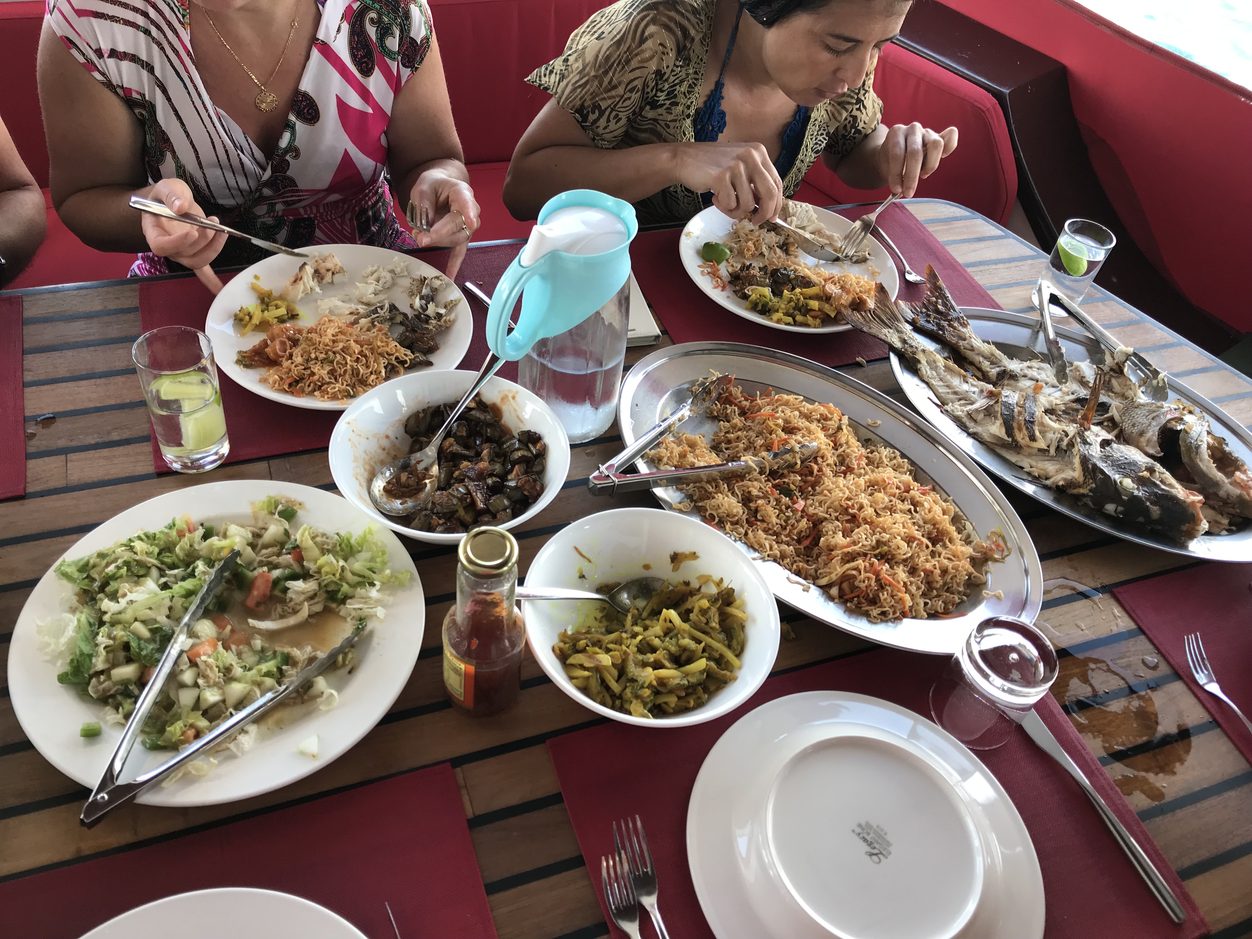 We motored to a new anchorage a further hour south, and everyone just chilled until dinnertime. A few people tried their hand at line fishing off the stern, with more laughs than luck.