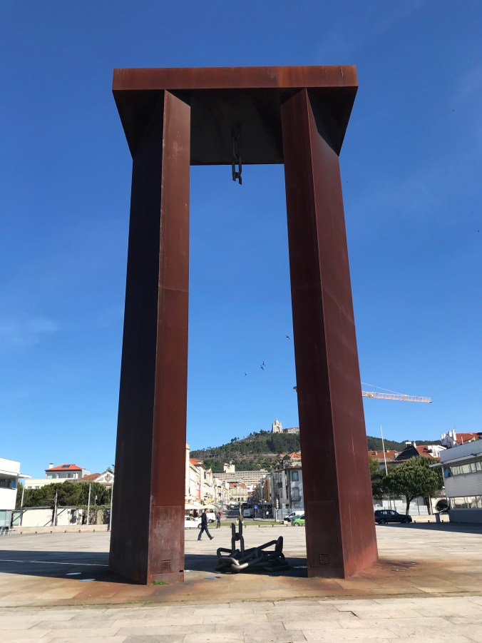 I’d no plans for today, just to wander around Viana on a day “off”. I started off down by the waterfront and went Right down to the fort at the corner of the river and the sea and found a large Street Fair happening. As big as the one in Palm Desert but with vendors shouting out their cheap wares, and shoppers digging frantically thru clothes, looking to grab their great deal before others can get to it.