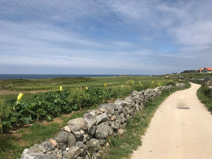 After Oia the way took us closer to the sea but still separated from it by small farming plots. Potatoes, onions and cabbage seem to be the current crop. The sun finally came out and that just made the walk that much more pleasant.