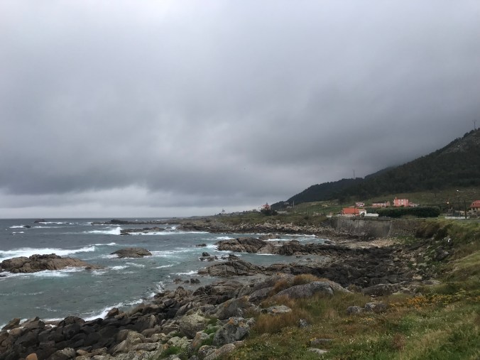 Then, outside our patio doors we could see other pilgrims leave around 7am. Is this a bed race for the next stage’s albergue? Or is everyone still on Portuguese time? I departed at 7:40am to dramatically windy and dark skies with the sea crashing across the road. Rain seemed imminent but the weather actually improved as the day went on.