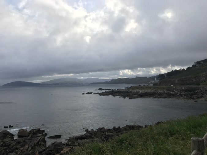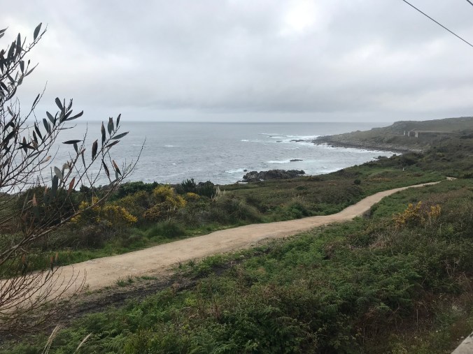 I had my mind that I’d be walking the highway all day, just get the miles done before the rain came, so I hesitated at the first deviation to drop down to a small road below, thought I’d just be adding additional distance but I did follow the arrows and happily as it turned out as the road went right down to the ocean and along the coast for a bit. Lesson #1 & 2: not to rush and not to second guess.