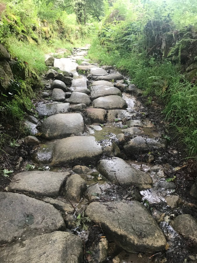 The rain finally started falling as a light mist just as I was navigating the large boulders used as paving stones on the steeper section of the walk through the forest. I’ve appealed to the rain gods for it not to get any worse, we’ll see.