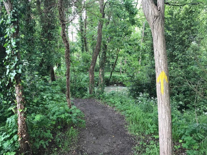 Almost all of us took a deviation on the route to follow a path by a small river. It was a lovely couple of miles, almost mystical being deep in the trees with the grey misty sky hovering just above the treetops.
