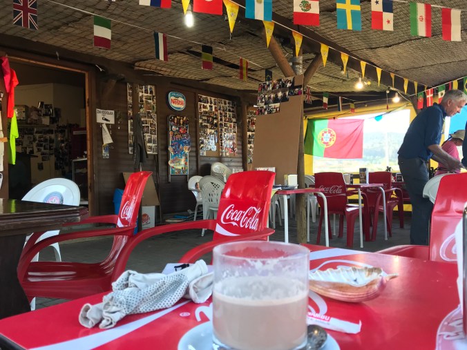 At 7.2kms there’s a welcome little snack kiosk with the great name of O Chiringo de Concha, and the first pilgrims I’ve seen since starting, enjoying their morning pickup. It’s a fun place and busy place with lots of photos on the walls of happy customers and a caring hostess who actually ran after one lady to make ensure she got a stamp for her pilgrim credential!