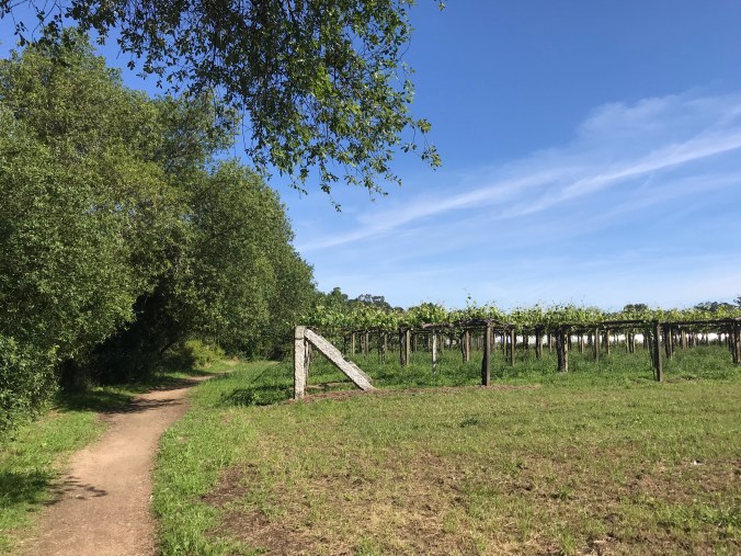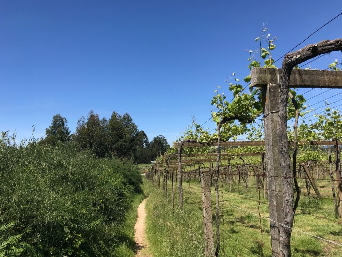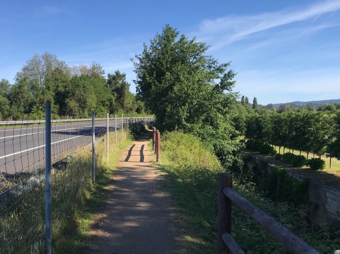 The path continued on in different variations; sometimes between the creek and highway, sometimes between the creek and vineyards, for the next 7 kms.