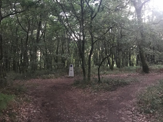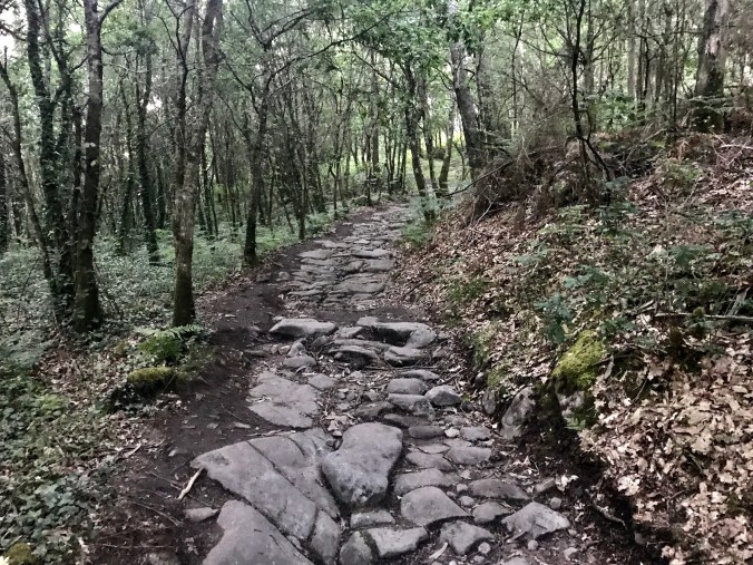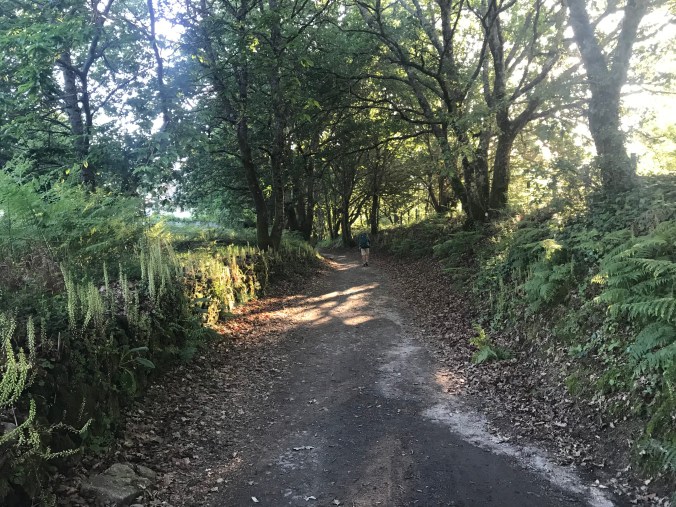 I feared I’d be walking along that busy N road outside my hotel but after just a short bit we swung off it, never to see it for the rest of the day. We dipped into a cold, dark forest which thankfully lost its gloom as the trees thinned as the trail continued. It’s only 7:20am but the sun isn’t over the horizon here yet. As soon as I came out of the forest a Camino cafe appeared – on a quiet back road serviced only by pilgrims I suspect that no locals ever visit. As I think there’s very few cafes on today’s route I stopped for my first coffee, at less than a mile in!