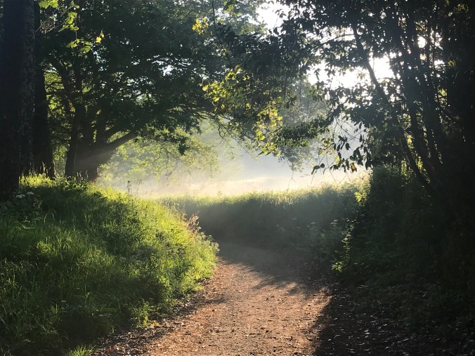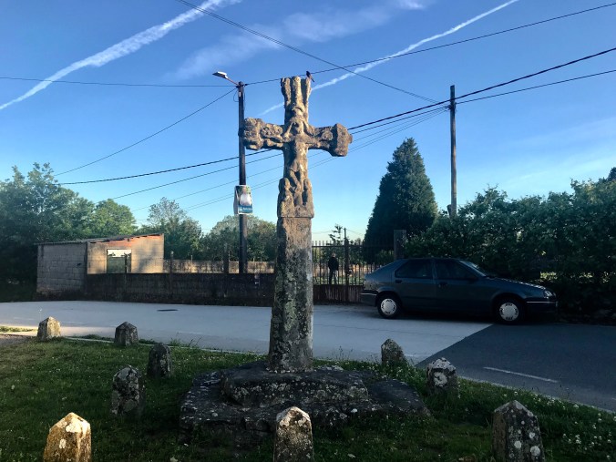 The mornings’ walk was lovely. Small villages with ancient crosses, between hedgerows with the forest trail cutting deep, past meadows still misty and dewy at 9am. In fact, it really was “country” until just 2kms from Santiago where the urban sprawl hit.