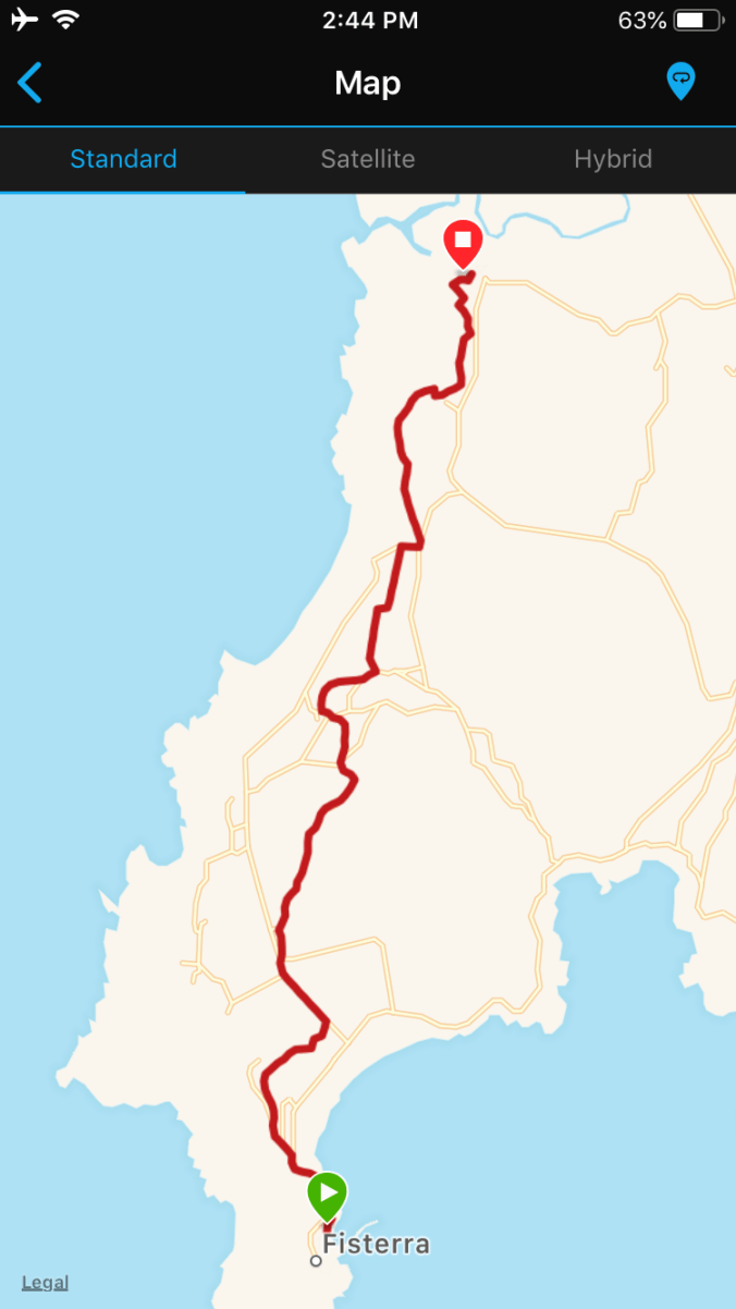 I meet several pilgrims walking towards me on their way to Fisterra. There’s something to be said for that as the bus connections back to Santiago are much more frequent from Finisterre than from Muxia (I’m limited to 6:45am or 2:30pm) but I wanted the amazing view of the “end of the world” as I had walking yesterday into Fisterra.