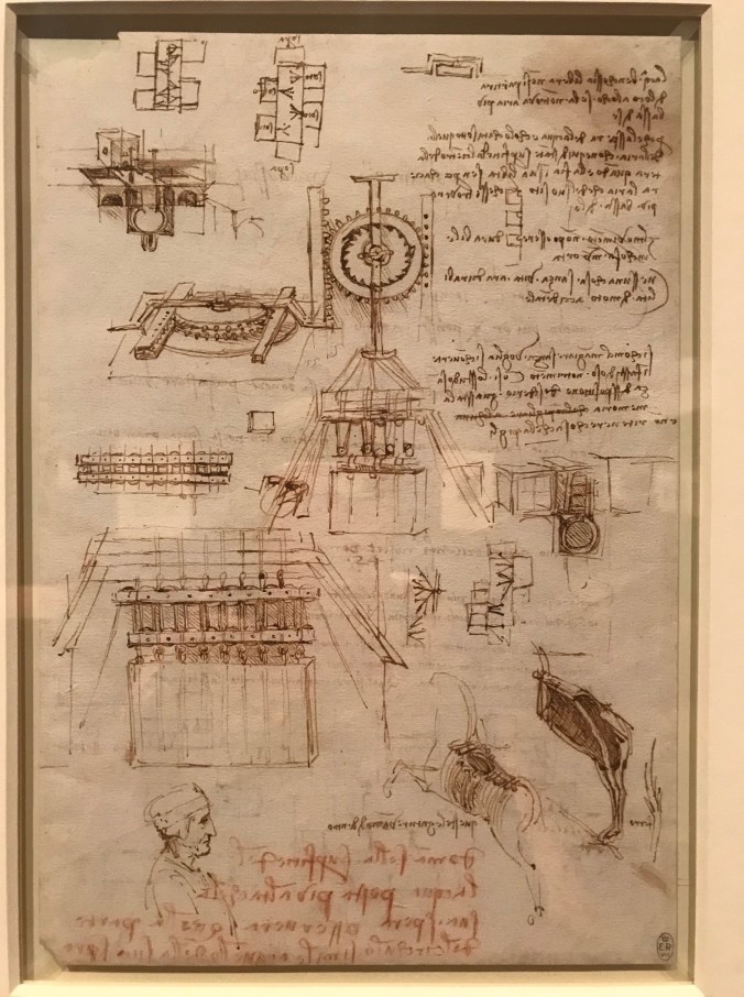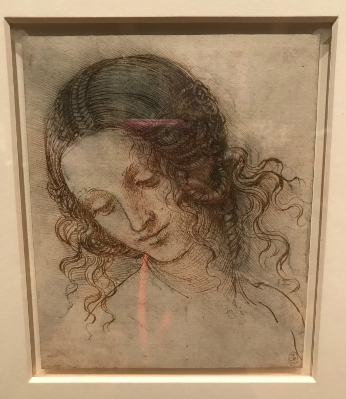 First on my list was the Leonardo Da Vinci show on at the Queen’s Gallery at Buckingham Palace. Like Rembrandt this is a big anniversary year for Leonardo, 500 years since his death, and Britain is having a big exhibition of his drawings. The Queen owns the most drawings in private hands and over the last 6 months a hundred or so have been shown at 6 national museums around the country. Now they’re all back in London and they’ve added another hundred to the display so it’s really a once in a lifetime opportunity to enjoy his genius.