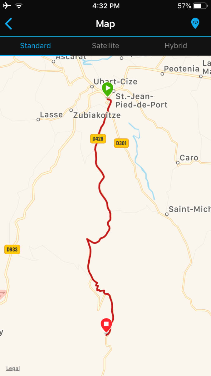 Orisson was sold out so Rui had to taxi back to St. Jean for the night – he’ll taxi back here in the morning to start where he left off today.