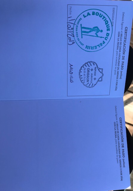 We needed to get our first stamp for our pilgrim credentials to prove our starting point. We tried the Pilgrim Office but it had just closed for lunch so a nearby sporting goods store grudgingly obliged us. That done we picked up sandwiches for the road and set ourselves off on our adventure!