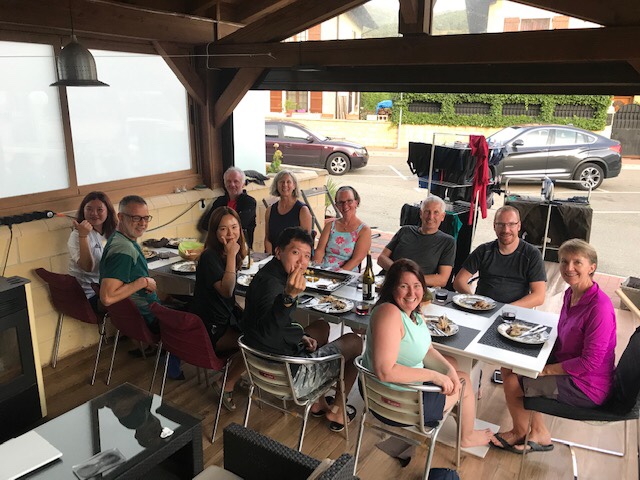Update: the albergue served a fantastic communal dinner last night! I think we all moaned in anticipation when we sat down to a gourmet salad as our first course, and the main of roasted chicken and potatoes beat anything that 2* place could have served us! The wine flowed freely and we had lots of laughs sharing our earned camino stories. An international group: pilgrims from USA, Canada, UK, Korea, Spain, France, Germany, and Australia!