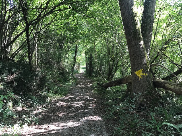 We had fun trying to spot the direction arrows this morning; although sufficiently way-marked there is not a plethora of signs nor are the markings very large, typically just yellow electricians tape 5’ up a signpost. I did have the Buen Camino app which showed our location relative to the Camino as well as the maps.me app so we couldn’t get too far off trail.