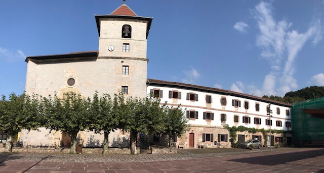 It was getting on 3:45pm, hot, and I was ready to be done. The last 45 minutes to the monastery at Urdax was quite pleasant, the route skirting the main road and taking a side road right to the back of the monastery. The door was open but no one in evidence so I went up to the albergue on the first floor which surrounds a cloister. There’s 4 other pilgrims here: a Spanish couple from last night and 2 French ladies. There’s room for 2 dozen but I doubt there’s ever been that many.