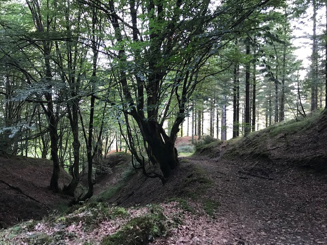 Not quite as humid as yesterday and much more of the Way was along lovely forest paths so it was rather pleasant walking conditions, besides the 5 kms of climbing! Once I was up and over the hill I found the valley below had disappeared into the mist. The sun had just turned on its full glare so it was gone by the time I reached the valley floor.