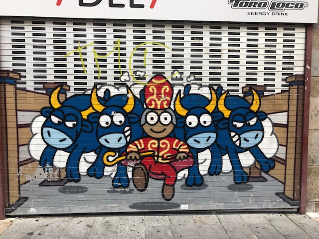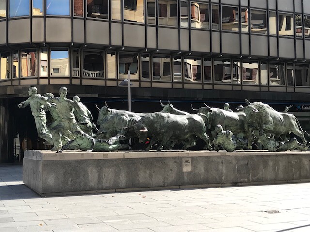 By 3pm I’m out on the streets again which are alive with tourists and tapas bars. It’s Saturday afternoon so everyone is out enjoying themselves. I walked up the famous Running With The Bulls street, which sells lots of kitschy souvenirs, to the monument celebrating this annual event.