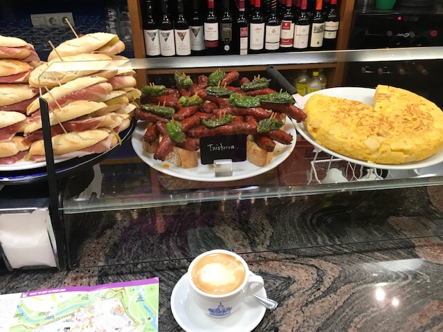 Strolling around I found myself at the famous “Hemingway” bar and decided to treat myself to a late 3-course lunch. Definitely a step up from the traditional pilgrim’s meal: warm octopus salad with red peppers and fried goat cheese; grilled salmon and vegetables; caramel flan; and my own bottle of wine = 16€. I ❤️ Spain!