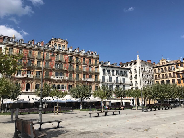 A pleasant walk again by the river, I arrived in Pamplona at 9:30a to find the town still locked up tight. Spaniards are NOT early risers so there is only the odd bread shop open. Streets are being cleaned and garbage being picked up. A town is always more attractive when things are open and there’s the hustle & bustle of daily life going on so I’ll find a cafe to sit and wait…