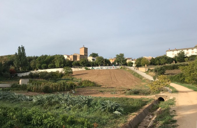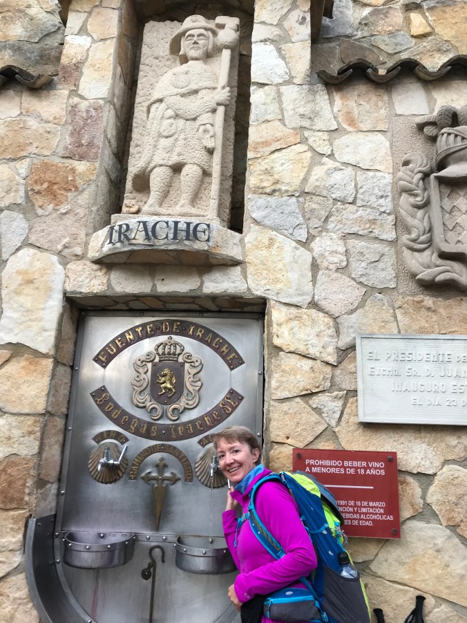 Estella turned out to be a major town and it was 4.5 kms through the town and suburbs before I reached the countryside. One of the last edifices being the famous Irache Bodega, where there’s been grapes growing for over a thousand years(!), and since 1991 a free flowing tap has dispensed wine to thirsty pilgrims.
