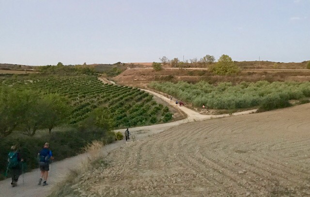 What a grape day! Ha, ha. Been wanting to use that. Actually it was more of an okay day but this is the heart of Rioja and grapes were everywhere. Except at the beginning, I couldn’t see anything then. The hospitalero flicked the lights on in our big loft at 6:20am so there wasn’t really anything to do but get up. Still pitch black outside so I’d thought I’d succumb and have an albergue breakfast (coffee, toast, juice) but no one else did, they all just left. So I did too, at 7am with my headlamp blazing.