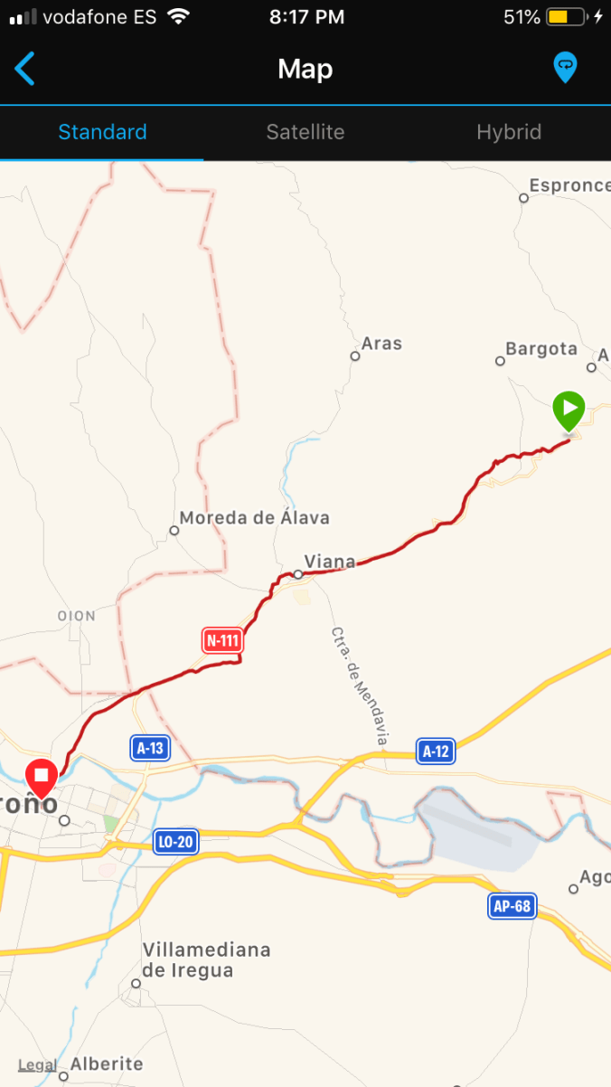 I followed the vineyards right to Viana where there was a good half dozen bars all on a row on the main street. I think all the pilgrims before me stayed relaxing in town as I had the Camino pretty much to myself afterwards.