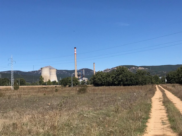 My last 6kms were a bit of a drudge. There was an option for the last bit: country 6kms or asphalt 5kms. I chose the former as anything is easier on the feet than pavement but it turned out to be gravel roads in full sun around a power plant. Not the scenic byways I was hoping for.