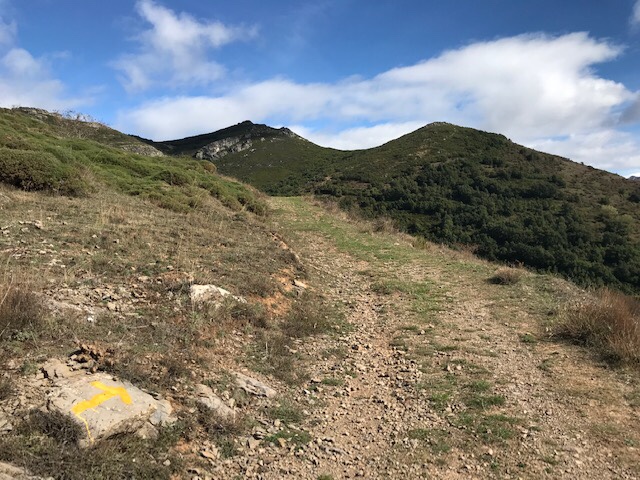 I got my share of elevation next as after the town of Buiza I was on a path going straight up, heading for the rocky ridge above. Now I was feeling my pack! My favorite refrain when facing adversity such as long slog or steep climb is from Lord of The Rings: “there’s nothing for it, Mr. Frodo” (naught one can do but continue on). As added incentive I promised myself my chocolate croissant once I reached the top!