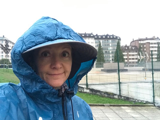 Fortified, I headed out, only to be rained on a few minutes later. I stopped to get all rigged out in my new blue poncho for it to stop about 15 minutes later! I leapfrogged a large bunch of Korean ladies as I was putting on/pulling off my rain gear. They were all smiles and “Buen Camino”; from their new-looking shoes, I think they’re just starting out. Within the first hour I’d seen more pilgrims than the whole Salvador route!
