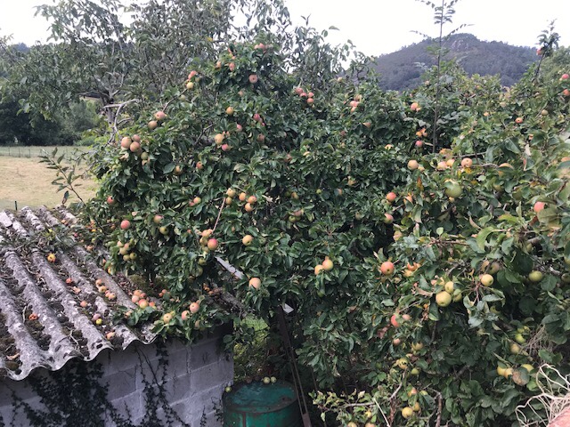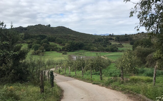 I did well until my 2nd rest stop at about 20 kms. My shin-splinty leg was starting to make itself known so I had a good rest and popped an Ibuprofen. The last 6 kms I took it slowly, spending lots of time taking photos and thinking about the small things: someone’s choice to paint their house in brilliant turquoise, the amount of wildflowers still in bloom this time of year, what is still growing in the locals’ gardens and how there’s so many apple trees, most of the fruit just rots on the ground. I’ve a reserved bed tonight so no hurry in reaching my albergue….