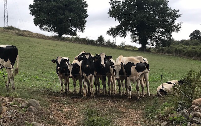 Today’s walk included a little of everything: big hills and little hills; lots of road walking and some pleasant forest paths; remote pastures and residential hamlets; bright sun and threatening clouds; cows, corn and apple trees.