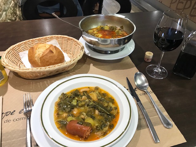 Grados is another drawn-out town and of course my albergue was at its’ far end! I was more than ready to stop and EAT as I’d only some toast, bread and a chocolate bar all day so I was on a mission to shower, wash clothes and hightail it to the recommended restaurant before lunch service stopped at 4pm. I happily indulged in the full 3-course menu and the first course Asturian soup was so good I could’ve wept. I did my best to eat the whole tureen but also had to leave room for the two courses to follow. No dinner for me tonight!