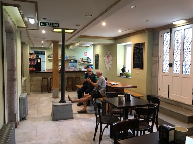 Today: Well, it only took .4 kms before I made my first stop this morning. I hadn’t slept well, so ended up leaving the hotel before dawn, which isn’t really practical as it’s too hard to see the waymarkers in the dark. Ergo my breakfast stop at the first open cafe I found.